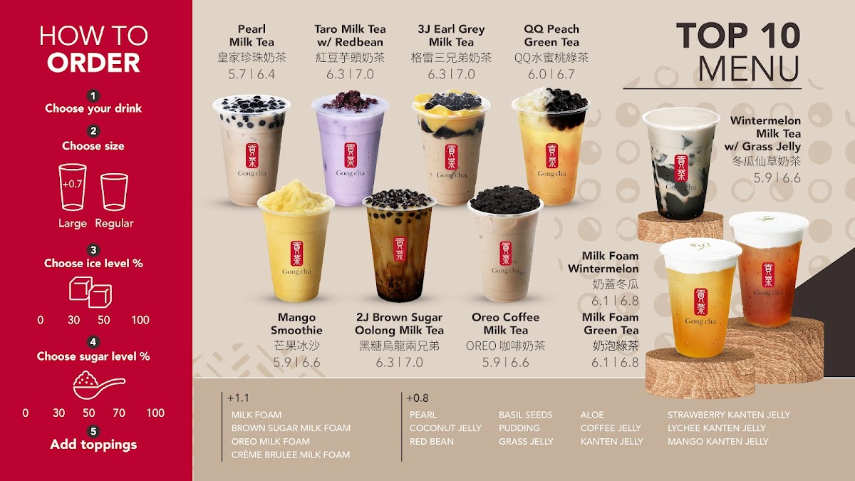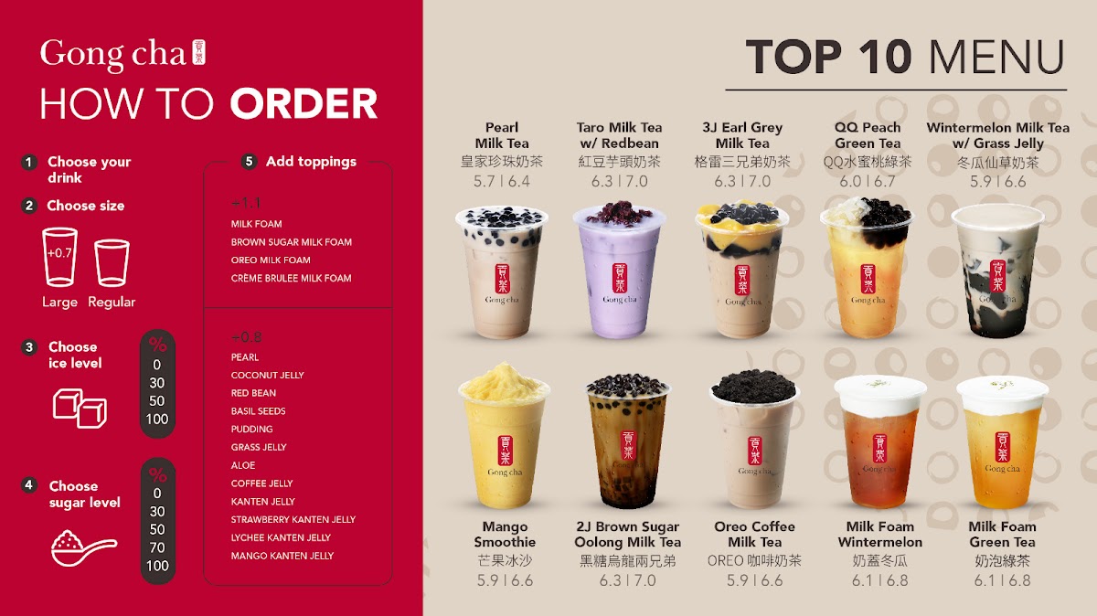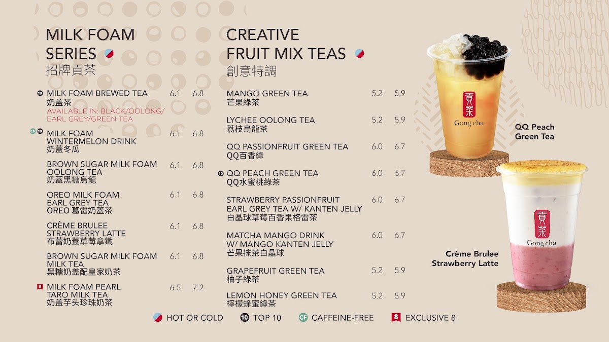 High-quality tea base topped with savory milk foam delivers extraordinary taste and rich flavor. a must try from gong cha.