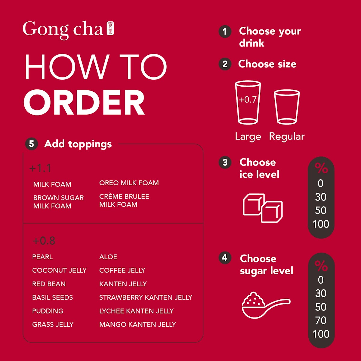 Gong Cha's most popular. Caffeine free. Minimum 30%sweet.
